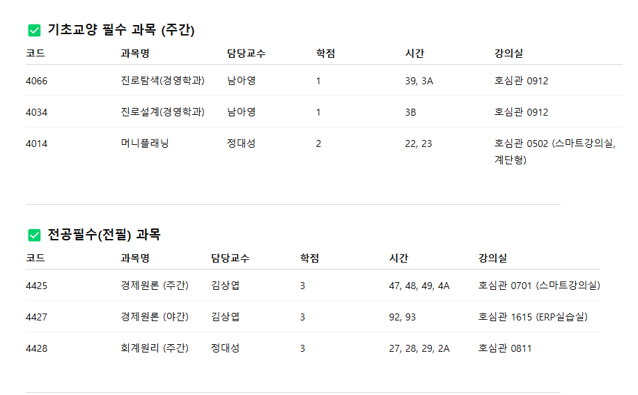 ◎ 2019학번 부터는 반드시 본인 전공의 전공필수 교과목을 이수하여야 졸업이 가능합니다. ◎ 경영계열통합 과정 이수시 경영학과는 전공으로 인정되지 않습니다. ■ 수강편람(2025학년도 2학기) ▶ 첨부파일 참조(8월중 업로드 예정) ■ 교과과정조회(2025학년도 2학기) ▶ 포털시스템 → 수강→ "교과과정조회(2025년 2학기)" 확인 (8월 오픈 예정) ■ 수강신청  ...