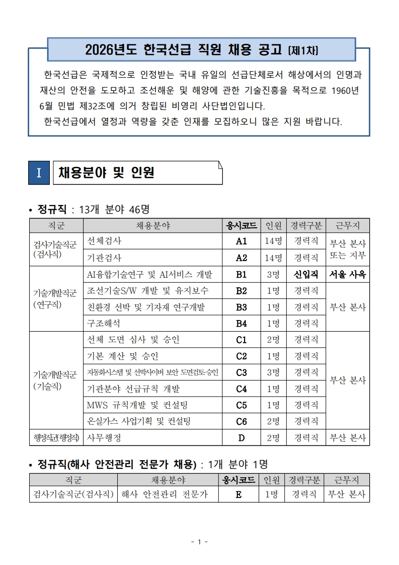 [채용] 2026년도 제1차 한국선급 직원 채용 (~ 4. 23. 목)